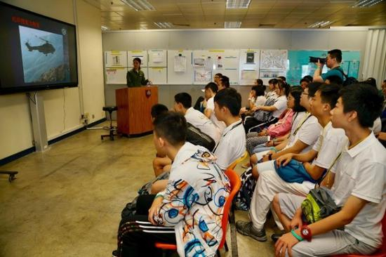 香港政府飞行服务队是香港特别行政区政府辖下一支专门承担搜索与救援任务的精锐部队。在这里,同学们认真聆听队员讲述他们的工作职责和执飞经历,对他们深厚的专业实力及沉着冷静的心理素质钦佩不已。