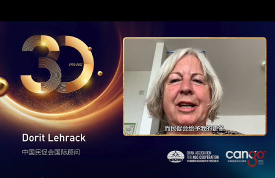 中国民促会国际顾问Dorit Lehrack (德国)、Dagmar Enste(德国)、Fabian Horst(德国)、Ludwing Weitz(德国),和国际合作伙伴代表亚洲农业改革和农村发展联盟(ANGOC)Don (菲律宾)、日本公益法人协会(JACO)和日本国际志愿者研究会(JIVRI)白石喜春、韩国志愿服务论坛的会长南英灿等对中国民促会成立30周年表示祝贺。他们一致肯定中国民促会在推动中国民间社会发展、中外民间社会合作、参与全球议题等方面发挥了重要的作用。“作为一名民间组织发展领域的专家为民促会提供支持,而民促会给予我的更多。”2006年“友谊奖”获得者、中国民促会国际顾问Dorit Lehrack说。